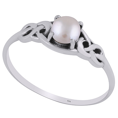 Home | Silver Rings | Cabochon Rings | Alluring Celtic Knot Around Pearl Round Shape 925 Sterling Solid Silver Ring
