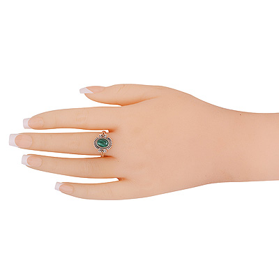 Beautifully Handcrafted Work Around Malachite Oval Shape 925 Sterling Solid Silver Ring