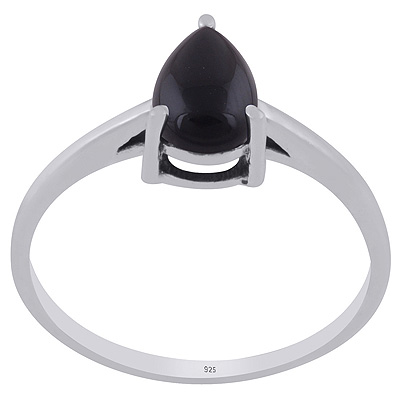 Gorgeous Prong Setting Black Onyx Pear Shape 925 Sterling Solid Silver Ring