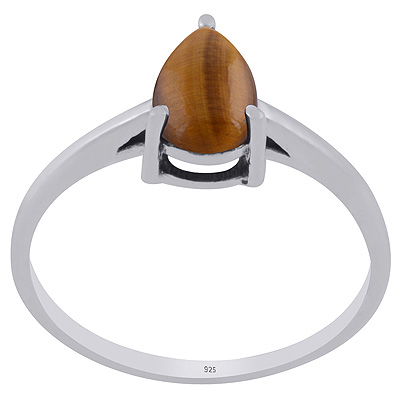 Gorgeous Prong Setting Tiger's Eye Pear Shape 925 Sterling Solid Silver Ring