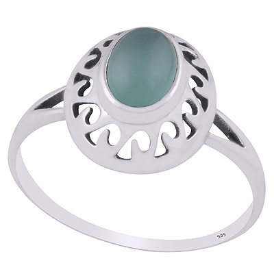 Stunning Pattern Cut Work Around Aqua Chalcedony Oval Shape 925 Sterling Solid Silver Ring