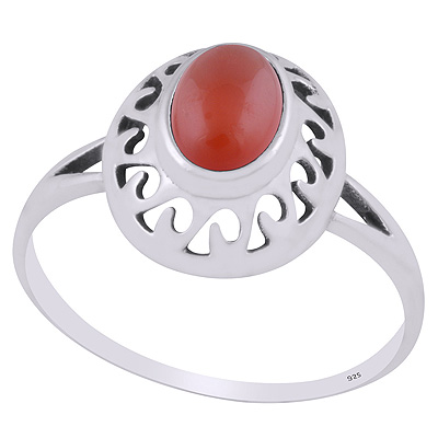 Stunning Pattern Cut Work Around Carnelian Oval Shape 925 Sterling Solid Silver Ring