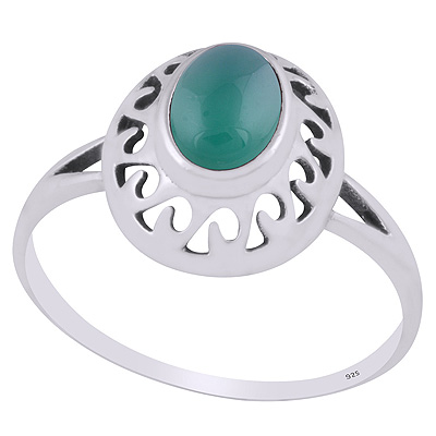 Stunning Pattern Cut Work Around Green Onyx Oval Shape 925 Sterling Solid Silver Ring