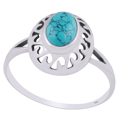 Stunning Pattern Cut Work Around Turquoise Oval Shape 925 Sterling Solid Silver Ring