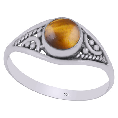 Stunning Rawa & Wire Work Around Tiger's Eye Round Shape 925 Sterling Solid Silver Ring