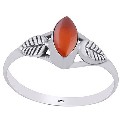 Gorgeous Handcrafted Leaf Around Carnelian Marquise Shape 925 Sterling Solid Silver Ring