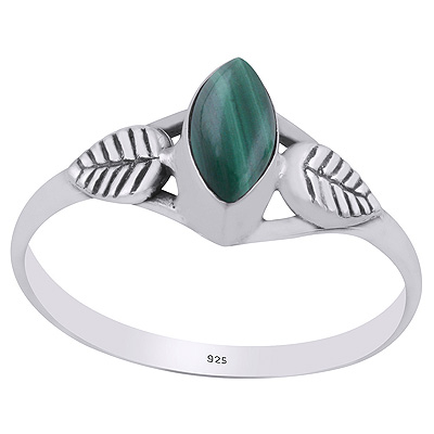Gorgeous Handcrafted Leaf Around Malachite Marquise Shape 925 Sterling Solid Silver Ring
