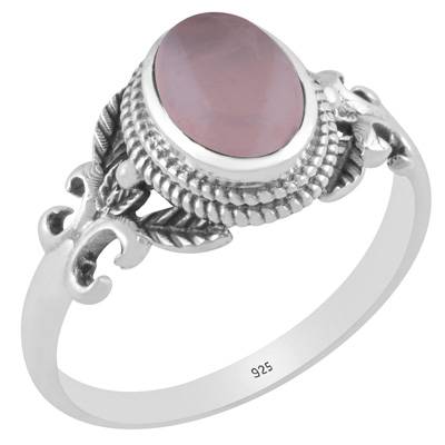 Alluring Cut out Butterfly Rose Quartz Oval Shape 925 Sterling Solid Silver Ring