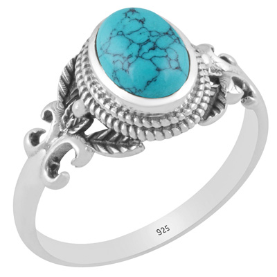 Alluring Cut out Butterfly Turquoise Oval Shape 925 Sterling Solid Silver Ring