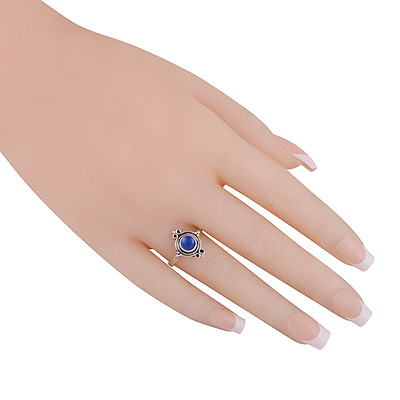 Stunning Oxidised Work Around Lapis Round Shape 925 Sterling Solid Silver Ring