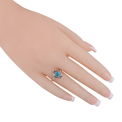 Stunning Oxidised Work Around Turquoise Round Shape 925 Sterling Solid Silver Ring