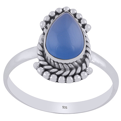 Beautiful Rawa & Wire Work Around Blue Chalcedony Pear Shape 925 Sterling Solid Silver Ring