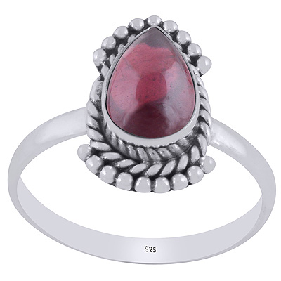 Beautiful Rawa & Wire Work Around Garnet Pear Shape 925 Sterling Solid Silver Ring