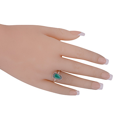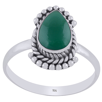 Beautiful Rawa & Wire Work Around Green Onyx Pear Shape 925 Sterling Solid Silver Ring