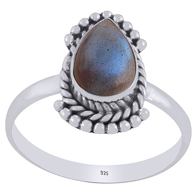 Beautiful Rawa & Wire Work Around Labradorite Pear Shape 925 Sterling Solid Silver Ring