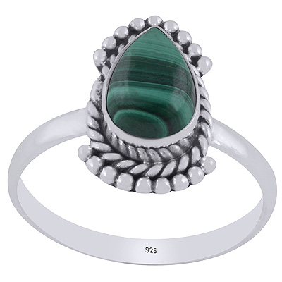 Beautiful Rawa & Wire Work Around Malachite Pear Shape 925 Sterling Solid Silver Ring