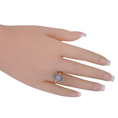 Beautiful Rawa & Wire Work Around Blue Chalcedony Pear Shape 925 Sterling Solid Silver Ring