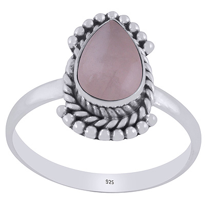 Beautiful Rawa & Wire Work Around Rose Quartz Pear Shape 925 Sterling Solid Silver Ring