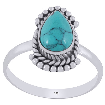 Beautiful Rawa & Wire Work Around Turquoise Pear Shape 925 Sterling Solid Silver Ring