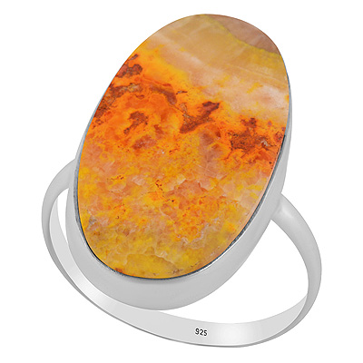 Plain Collet Natural BumbleBee Jasper Oval Shape 925 Sterling Solid Silver Ring