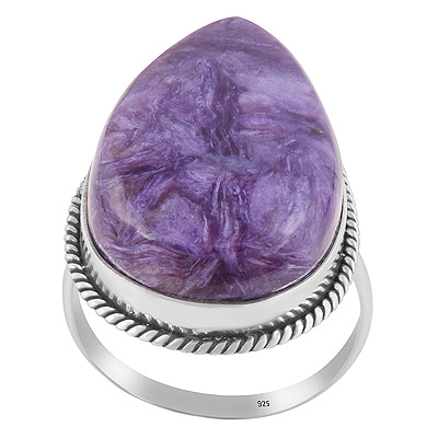 Home | Silver Rings | Cabochon Rings | Beautiful Twisted Wire Work Around Charoite Pear Shape 925 Sterling Solid Silver Ring
