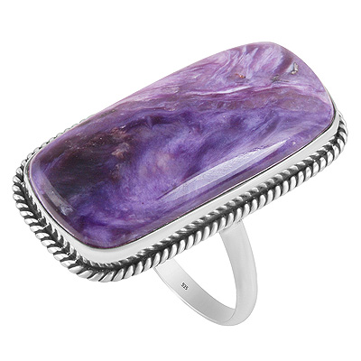 Beautiful Twisted Wire Work Around Charoite Rectangle Shape 925 Sterling Solid Silver Ring