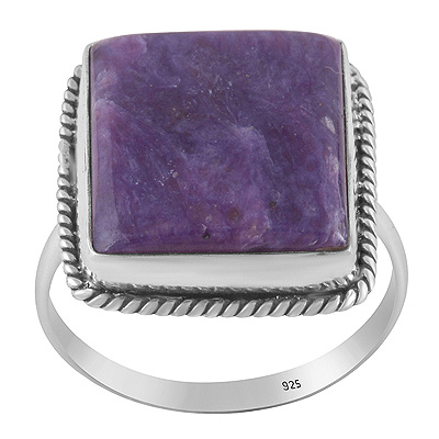 Home | Silver Rings | Cabochon Rings | Beautiful Twisted Wire Work Around Charoite Square Shape 925 Sterling Solid Silver Ring