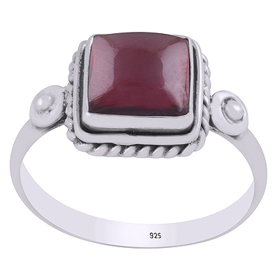 Stunning Handcrafted Work Around Garnet Square Shape 925 Sterling Solid Silver Ring