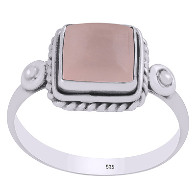 Stunning Handcrafted Work Around Rose Quartz Square Shape 925 Sterling Solid Silver Ring