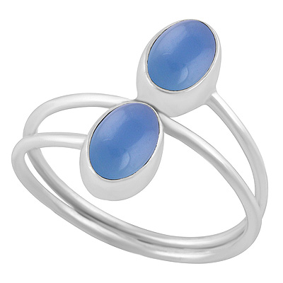 Stunning Shank Design Around Blue Chalcedony Oval Shape 925 Sterling Solid Silver Ring