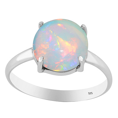 Gorgeous Prong Setting Around Ethiopian Opal Round Shape 925 Sterling Solid Silver Ring