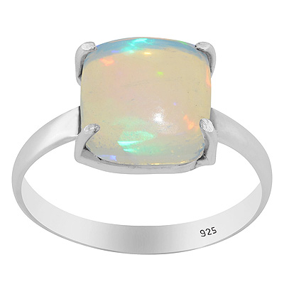 Gorgeous Prong Setting Around Ethiopian Opal Square Shape 925 Sterling Solid Silver Ring