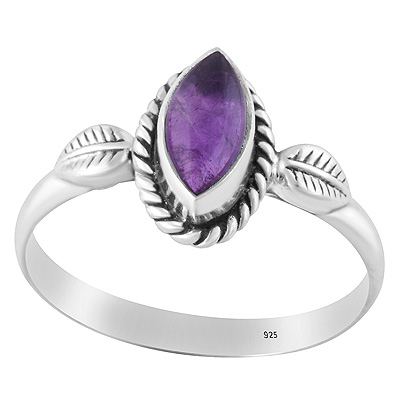 Gorgeous Handcrafted Leaf Around Amethyst Marquise Shape 925 Sterling Solid Silver Ring