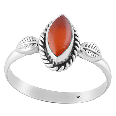 Gorgeous Handcrafted Leaf Around Carnelian Marquise Shape 925 Sterling Solid Silver Ring