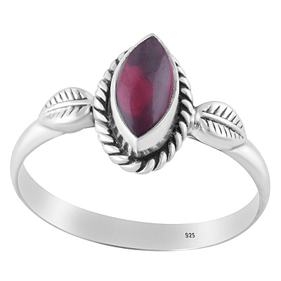 Gorgeous Handcrafted Leaf Around Garnet Marquise Shape 925 Sterling Solid Silver Ring