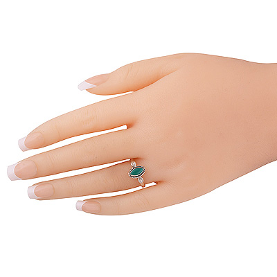 Gorgeous Handcrafted Leaf Around Malachite Marquise Shape 925 Sterling Solid Silver Ring