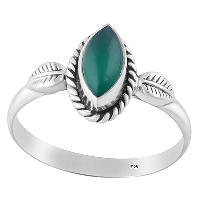 Gorgeous Handcrafted Leaf Around Green Onyx Marquise Shape 925 Sterling Solid Silver Ring