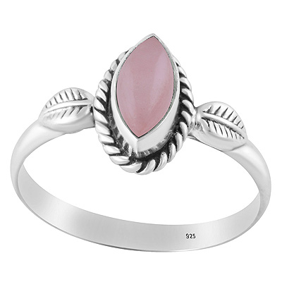 Gorgeous Handcrafted Leaf Around Rose Quartz Marquise Shape 925 Sterling Solid Silver Ring