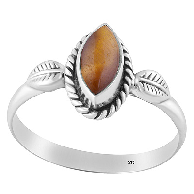 Gorgeous Handcrafted Leaf Around Tiger's Eye Marquise Shape 925 Sterling Solid Silver Ring