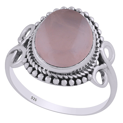 Stunning Handcrafted Rawa & Twisted Wire Work Around Rose Quartz Oval Shape 925 Sterling Solid Silver Ring