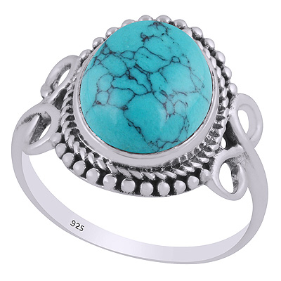 Stunning Handcrafted Rawa & Twisted Wire Work Around Turquoise Oval Shape 925 Sterling Solid Silver Ring