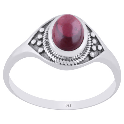 Alluring Twisted Wire & Rawa work Around Garnet Oval Shape 925 Sterling Solid Silver Ring