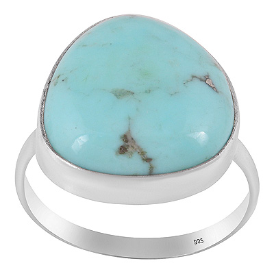 Plain Collet Natural Arizona Turquoise Fancy Shape 925 Sterling Solid Silver Ring