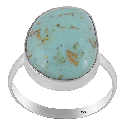 Plain Collet Natural Arizona Turquoise Fancy Shape 925 Sterling Solid Silver Ring