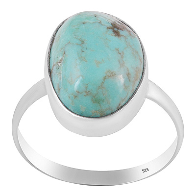 Plain Collet Natural Arizona Turquoise Fancy Shape 925 Sterling Solid Silver Ring