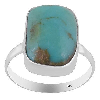 Plain Collet Natural Arizona Turquoise Rectangle Shape 925 Sterling Solid Silver Ring