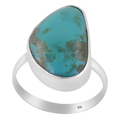 Plain Collet Natural Arizona Turquoise Pear Shape 925 Sterling Solid Silver Ring