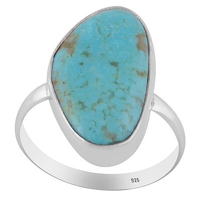 Plain Collet Natural Arizona Turquoise Fancy Shape 925 Sterling Solid Silver Ring