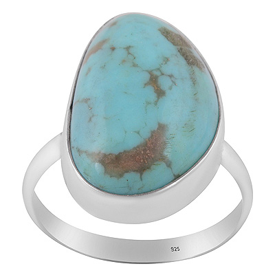 Plain Collet Natural Arizona Turquoise Pear Shape 925 Sterling Solid Silver Ring