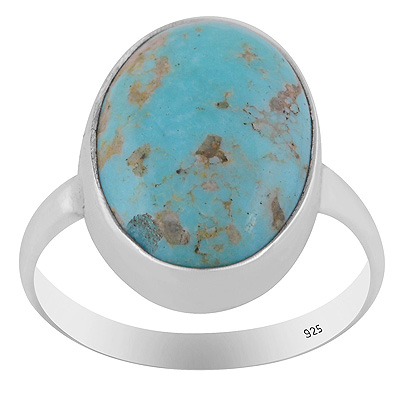 Plain Collet Natural Arizona Turquoise Oval Shape 925 Sterling Solid Silver Ring